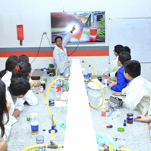 El laboratorio de Química y Biología es un espacio seguro y bien equipado para la práctica estudiantil, cumpliendo estándares internacionales con infraestructura y materiales necesarios.